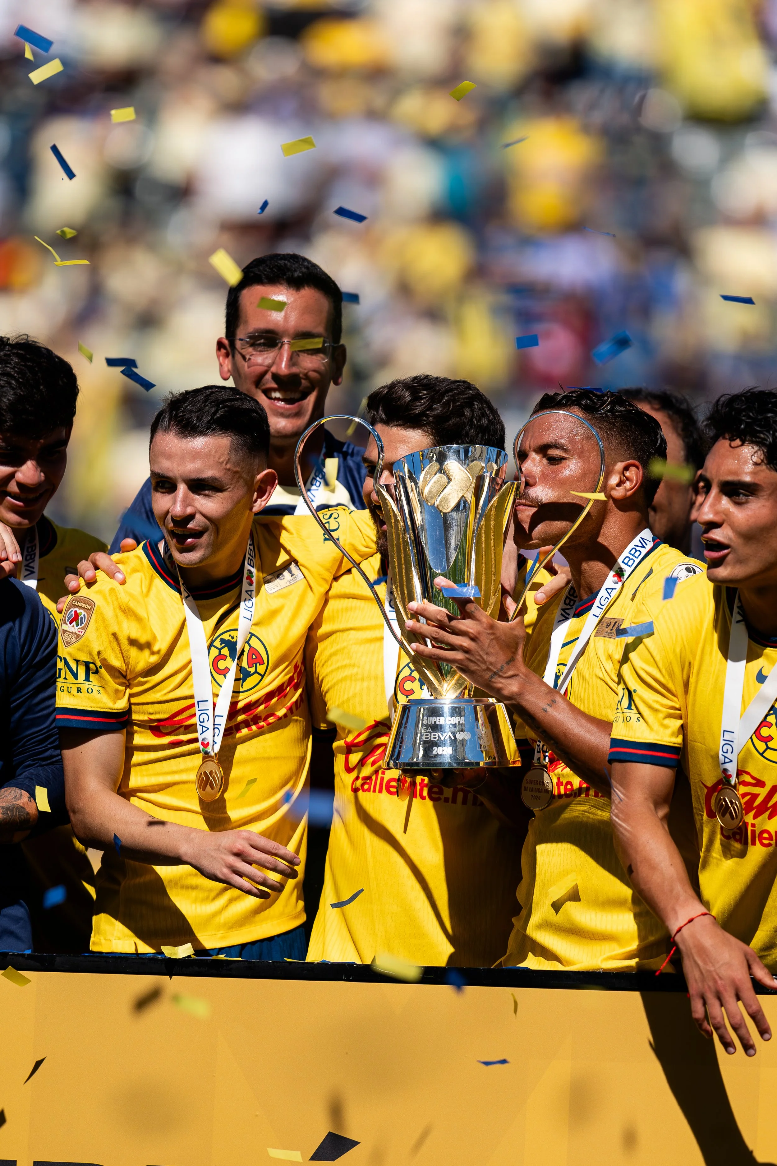Jonathan dos Santos kisses the trophy after winning the Campeón de Campeones MX on June 30, 2024, at Dignity Health Sports Park.