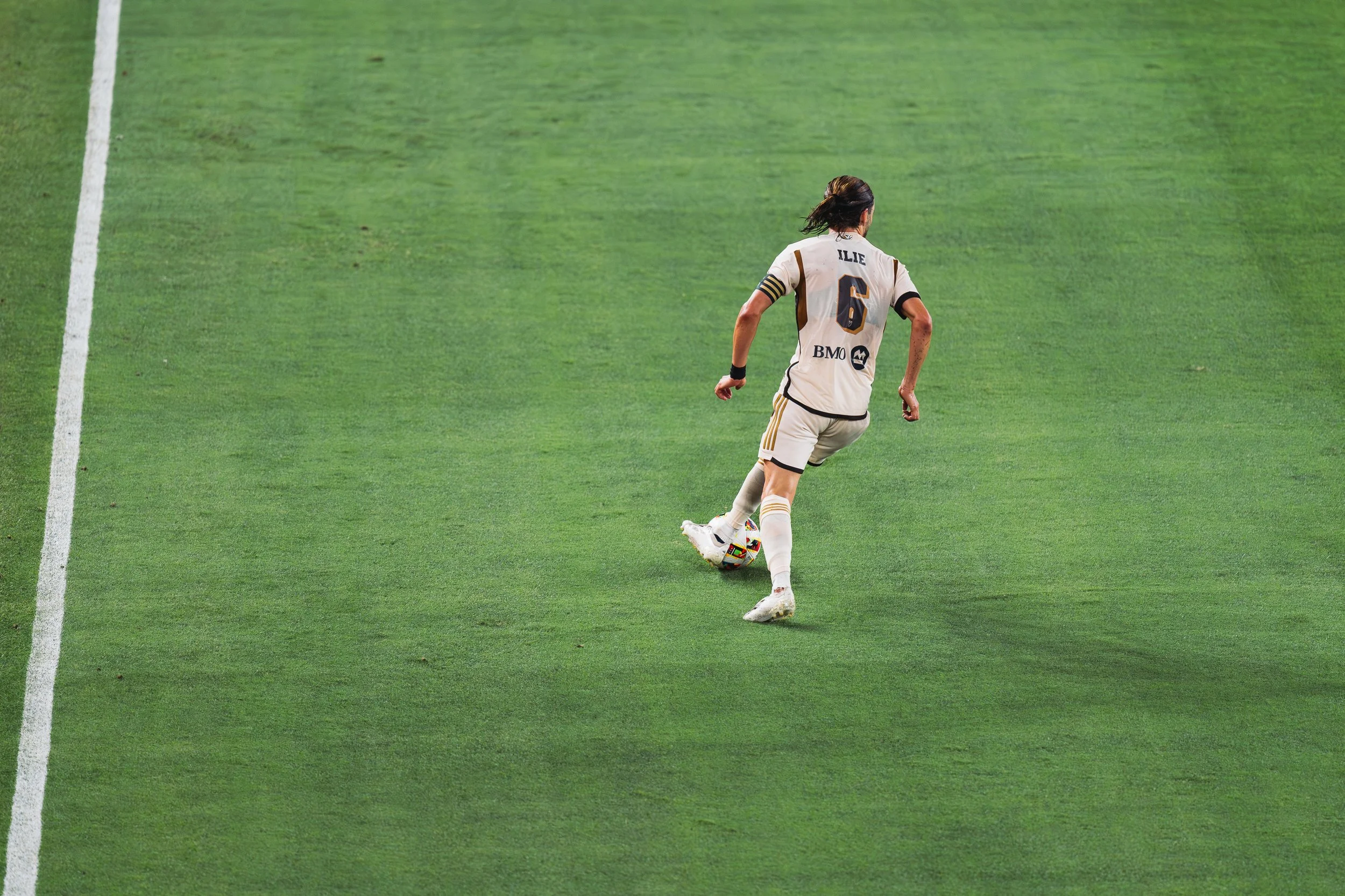 Ilie Sánchez dribbles near the touchline during a match against Real Salt Lake at BMO Stadium.