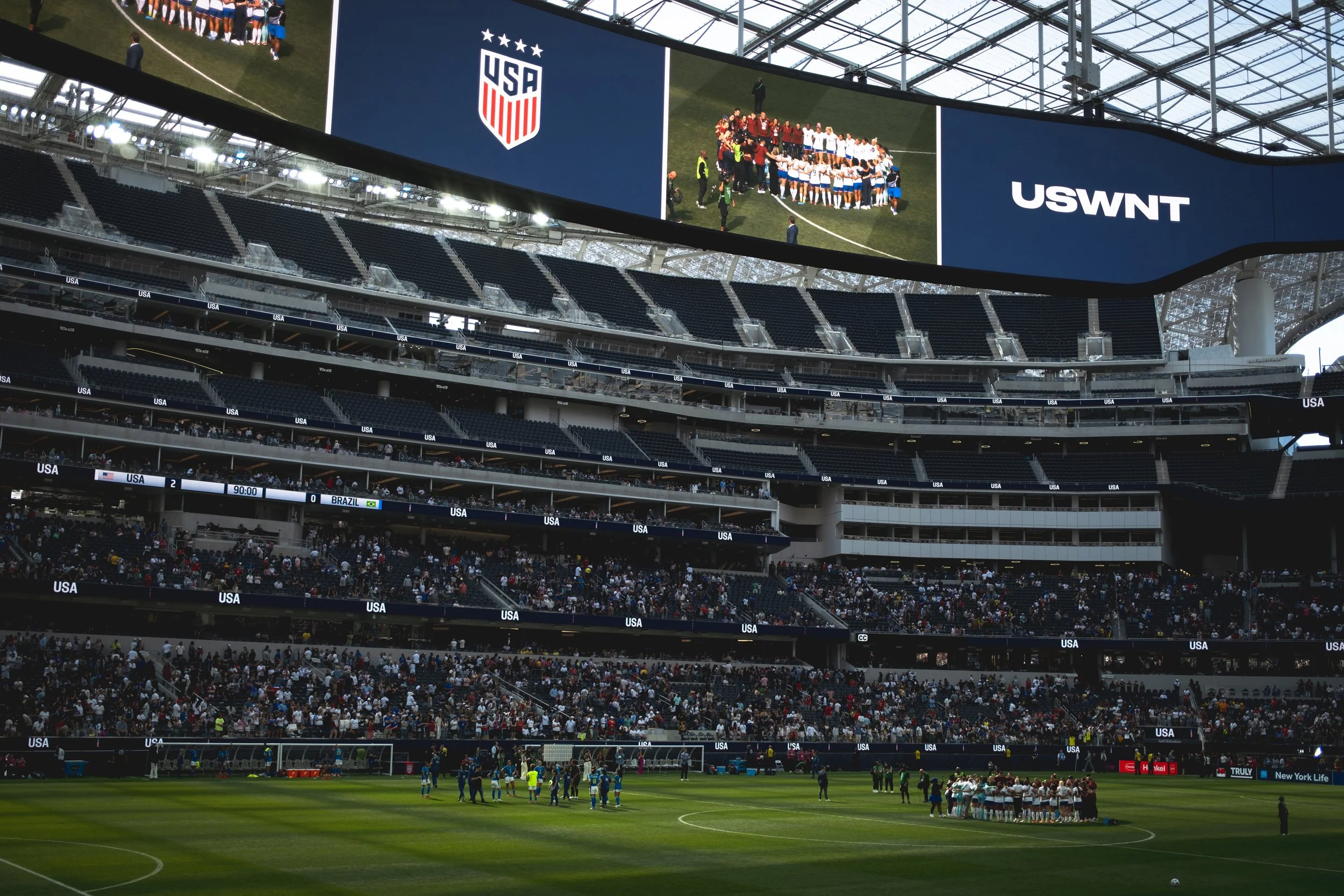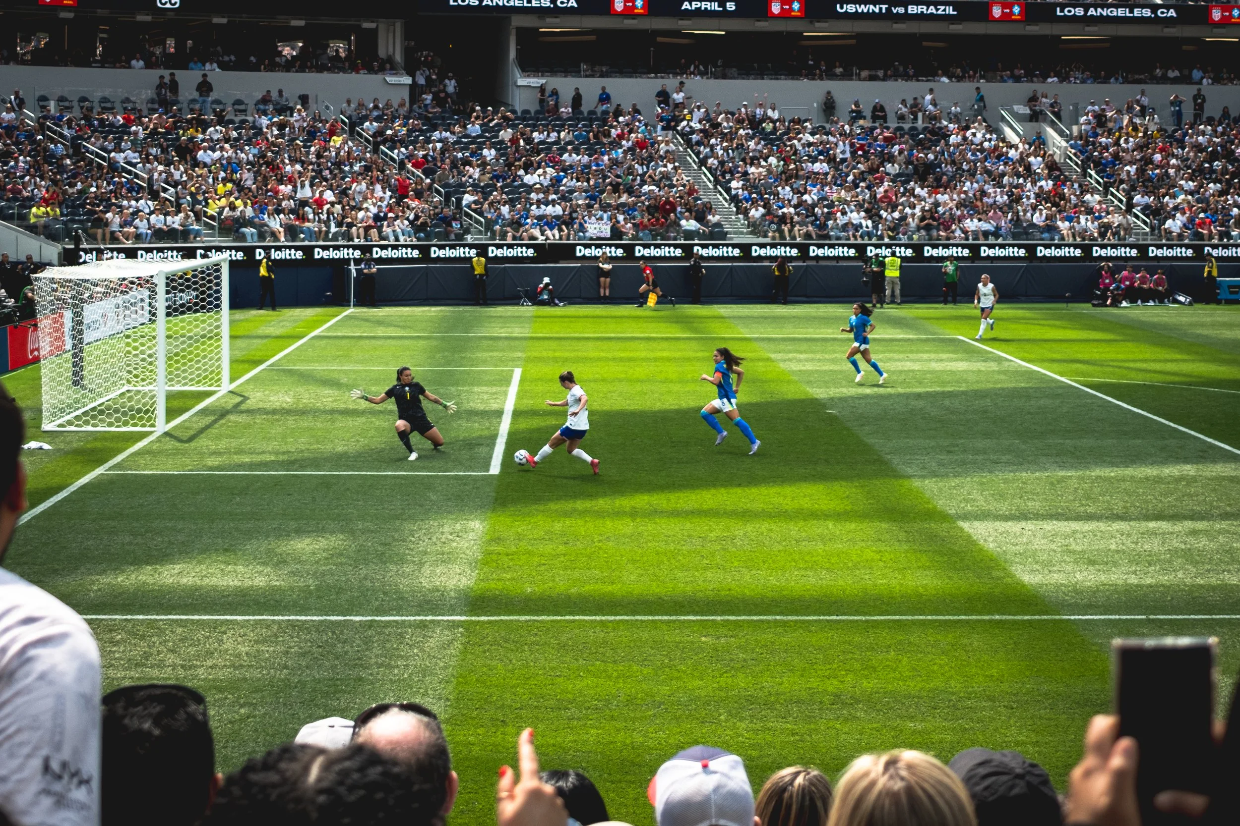 Trinity Rodman and Lindsey Horan both scored to secure a 2–0 victory over Brazil in a friendly match at SoFi Stadium — the venue’s first major professional women’s sporting event, with over 30,000 fans in attendance.